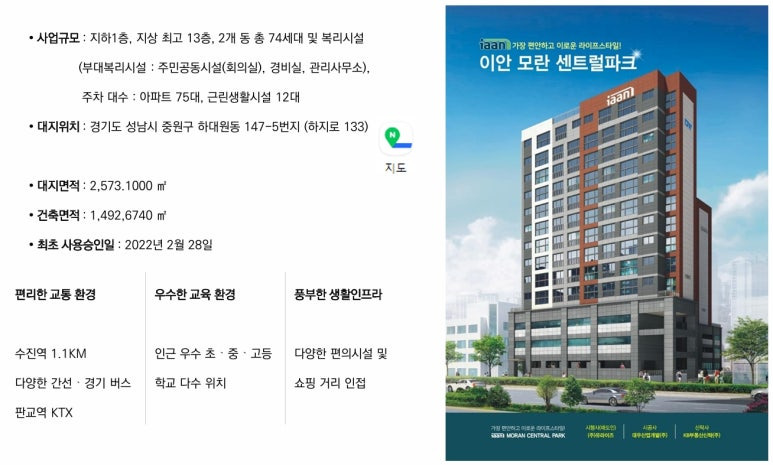 ◐ 이안 모란 센트럴파크 아파트 사업개요