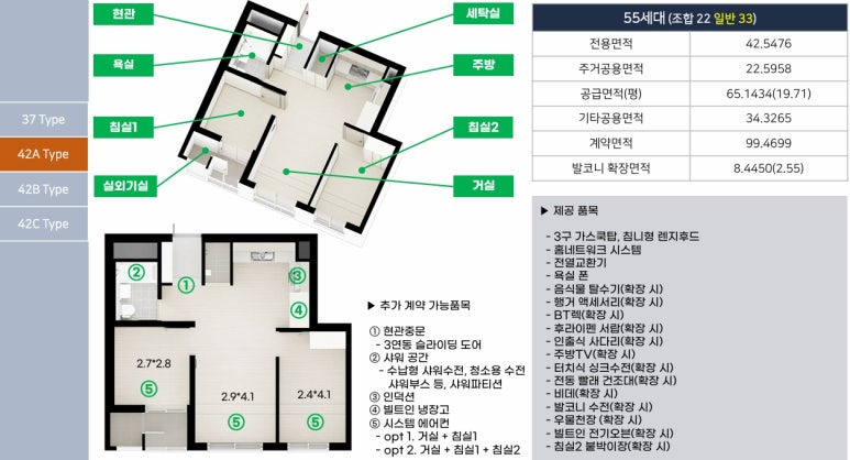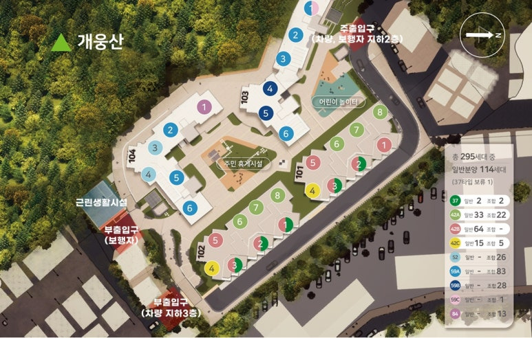 ▶ 총 295세대 중 일반분양 114세대 전용 37타입 42A,B,C타입으로 17py, 19py 1, 2인 수요 적합