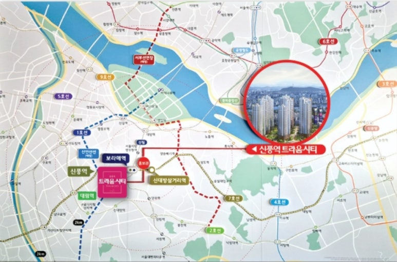 ▶ 신도림역, 영등포역을 통한 광역도시로 편리한 이동이 가능하며, 2km이내에 대규모 쇼핑센터인 타임스퀘이, 디큐브시티, 롯데백화점등이 위치해 편리한 생활인프라 구축