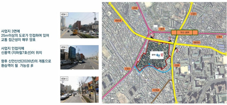 ▶ 사업지 인접지에 신풍역(지하철 7호선)이 위치해 향후 신안산선의 개통으로 인한 환승역이 될 가능성이 확정적으로 광역환승역으로의 성장을 예상