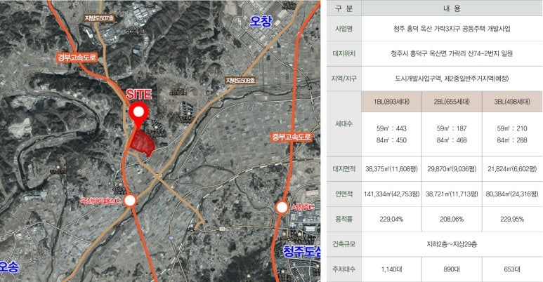 ▶ 청주시 흥덕구 옥산면 가락리 산74-2일원에 지하 2층 - 지상 29층 총,082세대 공급 예정