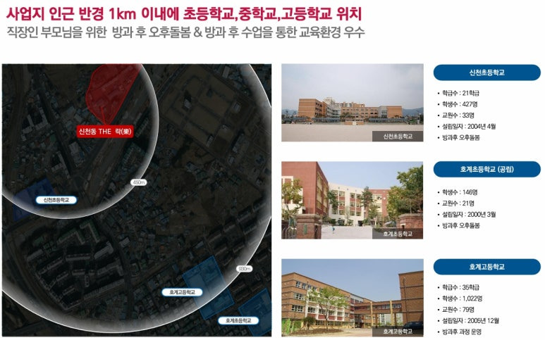 ▶ 도보통학권 5분거리 신천초등학교, 매곡 초.중학교가 있으며, 인근 학원가를 누리는 탁월한 교육 환경