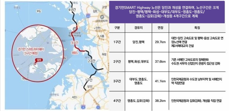 ▶ 경기만 스마트 하이웨이 노선으 당진~영흥도~영종도까지 4개구간으로 향후 개발 계획에 있다.