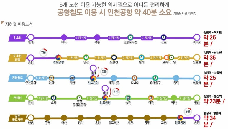 ▶ 당 사업지는 김포공항이 인접한 입지, 송정역(5호선, 9호선), 김포공항역(김포 골드라인, 공항철도) 등 사통팔달 서울 지역 이동가능한 버스, 김포공항 시내.시외버스 이용 편리