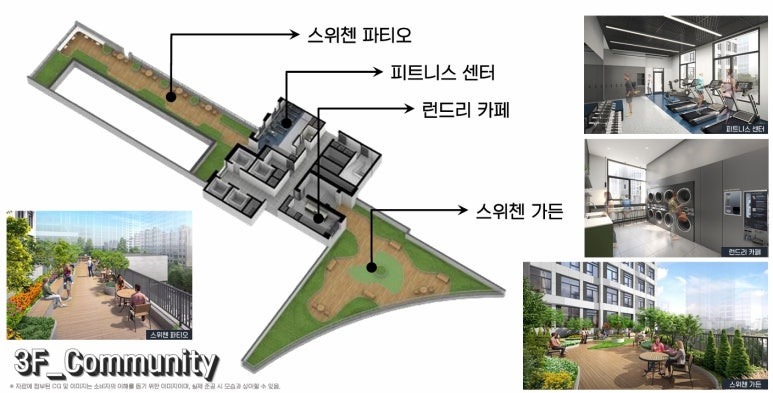 ▶ 미사 아넬로 스위첸만의 소통과 쉼을 통한 커뮤니티 존 (테라스 정원과 피트니스 센타, 런드리 카페를 통한 입주자의 편의와 휴식을 위한 공간이 확보 대어 있다.)