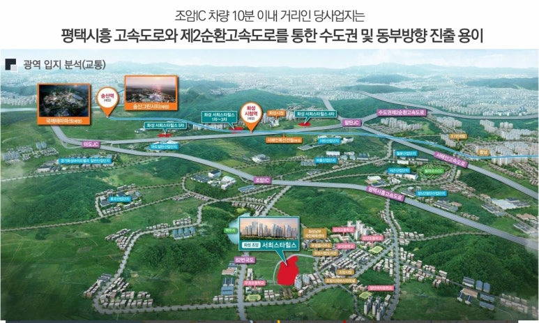 ▶ 주변에 광역버스 정류장과 조암시외버스터미널이 위치, 인근 조암ic이용 평택-시흥고속도로 서해안 고속도로, 평택-제천고속도로, 경부고속도로와 연결