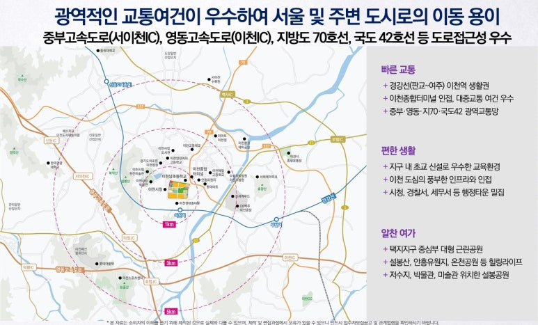 ▶ 당 사업지는 경강선(판교-여주) 이천역 생활권 입지, 이천종합터미널이 인접해 있어 대중교통을 이용한 수도권 이동이 우수한 입지