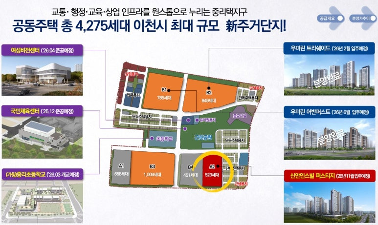 ▶ 경기도 이천시 증일동 23번지(중리택지지구 A-2BL) 외 일원 / 지하2층 ~ 지상20층(최고층) 총6개동 / 공동주택(아파트) 총523세대, 근린생활시설, 복리부대시설 등 공급예정