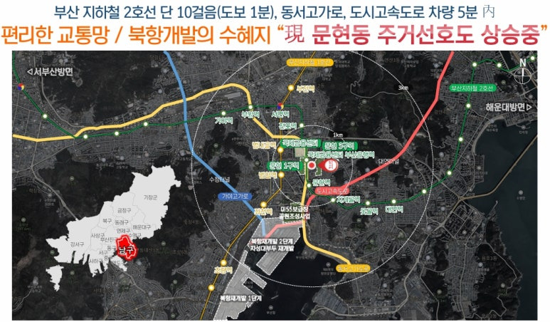 ▶ 당 사업지는 부산 지하철 2호선 국제금용센터역 도보1분 거리 초 역세권 입지, 전포대로, 중아대로, 동서고가로, 황령터널 등 부산 지역 내 이동성 최우수 입지