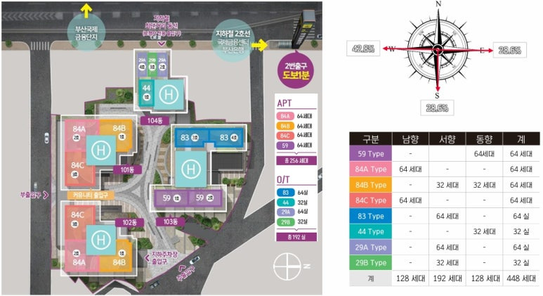 ▶ 부산광역시 남구 문현동 511-19 외 일원 / 지하5층 ~ 지상35층(최고층) 4개동 / 아파트 256세대, 주거용 오피스텔 192실, 복리부대시설, 근린생활시설 등 공급 예정