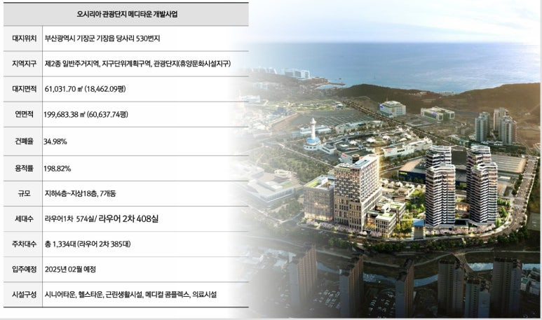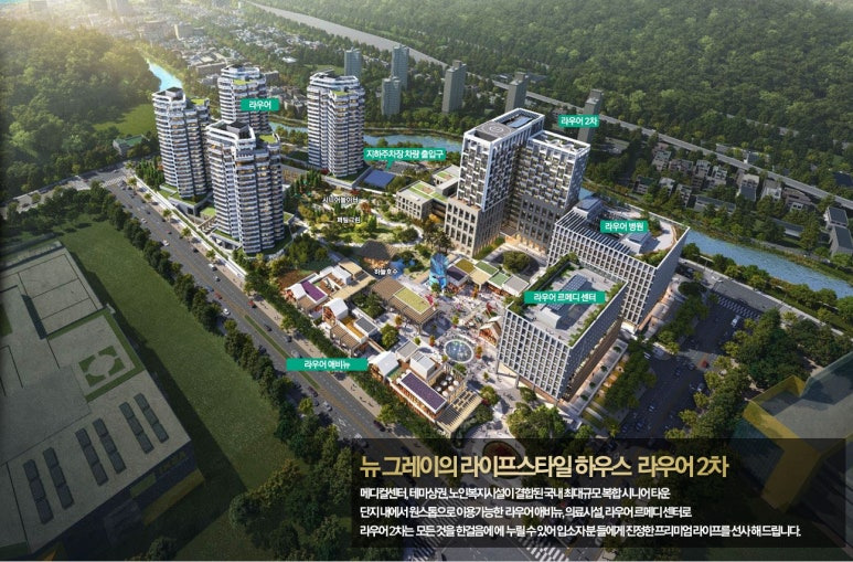 ▶ 부산광역시 기장군 기장읍 당사리 530번지 외 일원 / 지하4층 ~ 지상18층(최고층) 총7개동 / 라우어1차 574실, 라우어2차 408실 / 시니어타운, 헬스타운, 근린생활시설, 메디컬콤플레스, 의료시설, 복리부대시설 등 공급예정