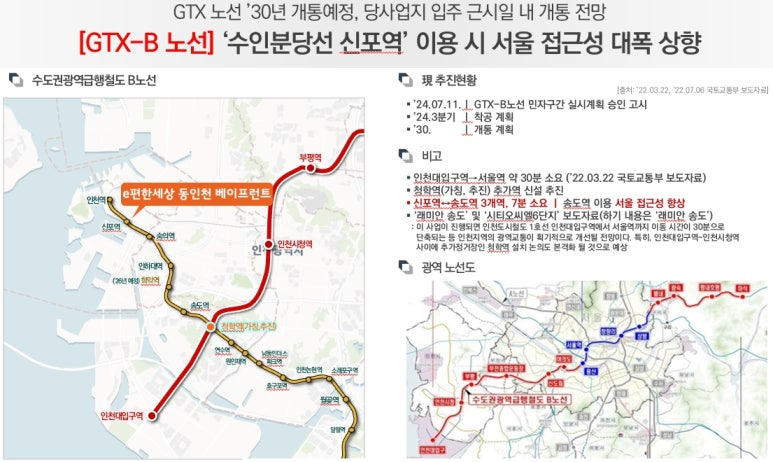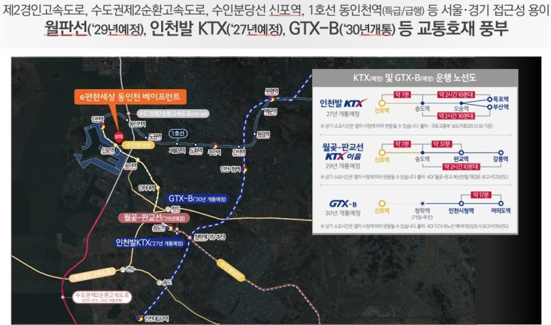 ▶ 당 사업지 바로 앞 신포역(도보 약1분거리)에서 누리는 초역세권 브랜드 단지로서 인천발KTX(27년 예정), 월곶 - 판교선(29년 예정)으로 전국 광역 교통망 인프라를 수인분당선으로 서울과 전국을 더 가깝고 편리하게 이용할수 있는 사통팔달 교통인프라, GTX-B(30년 예정), 수인분당선 환승을 위한 청학역(가칭) 추진으로 더 빠르게 이동