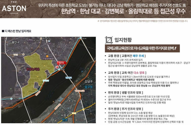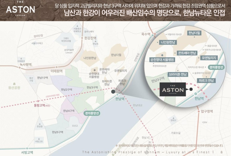 ▶ 당 사업지는 한남역 도보 2분거리의 초역세권 입지, 또한 차량이용시 한남대교를 이용 수월하게 강변북로, 올림픽대로 진입이 편리하여 서초구, 강남구 접근성 용이하며, 사실상 강남권역 생활권 공유가 가능한 입지