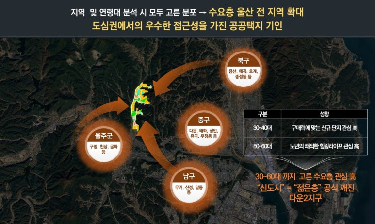 ▶ 당 사업지는 울산 도심권 과 인접한 공공택지지구로 다운2지구 우미린 어반파크는 행정구역으로는 중구에 속한다.