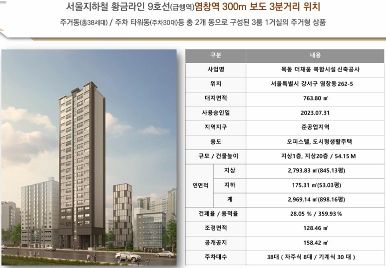 ▶ 서울 지하철 황금라인 9호선 (급행역) 염창역300m 보도 3분 거리 위치