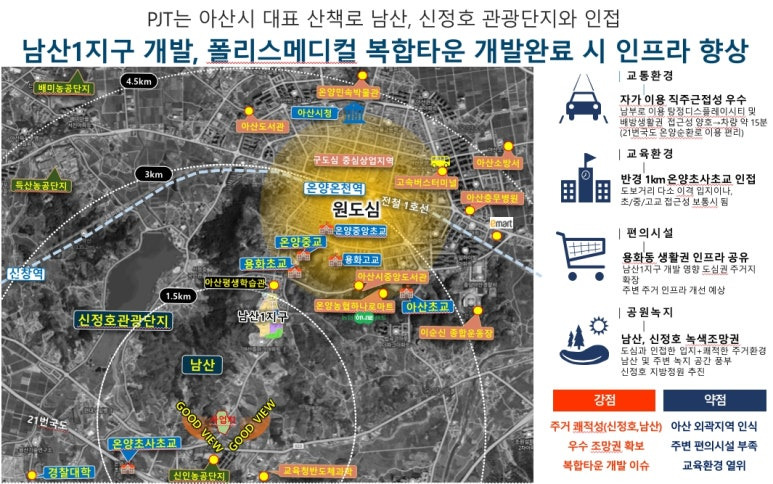 ▶ 사업지 약 1km 온양초사초교 인접 도보 통학이 가능 하나 다소 이격 입지 약 3km이내 중, 고교 위치