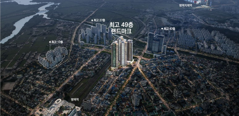 ▶ 경기도 평택시 통복동 108-3번지 외 일원 / 지하6층 ~ 지상49층(최고층) 4개동 / 공동주택 총784세대, 주거용 오피스텔 50실 및 복리부대시설, 상업시설 공급 예정
