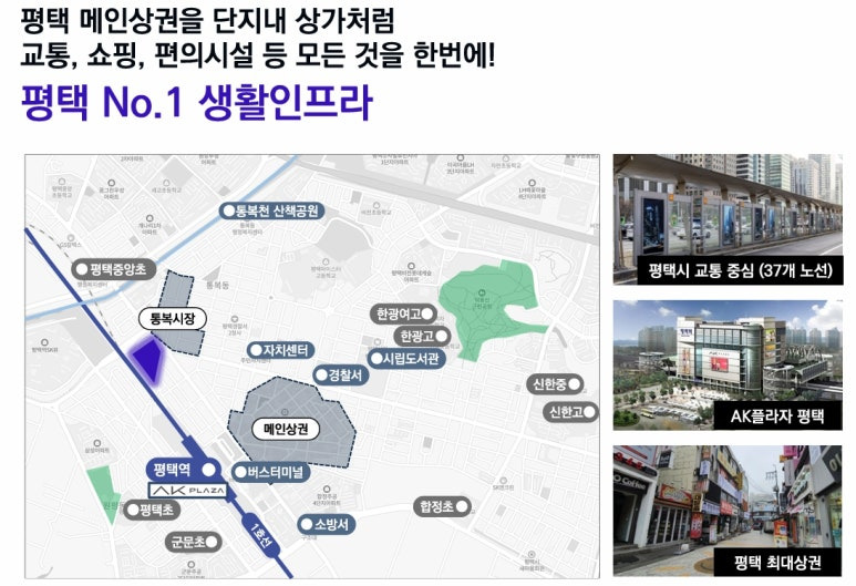 ▶ 평택역 상권, 통복시장, AK플라자 슬세권 형성, 이마트, 코스트코(예정), 롯데마트 약 5km 생활 인프라 매우 우수 입지