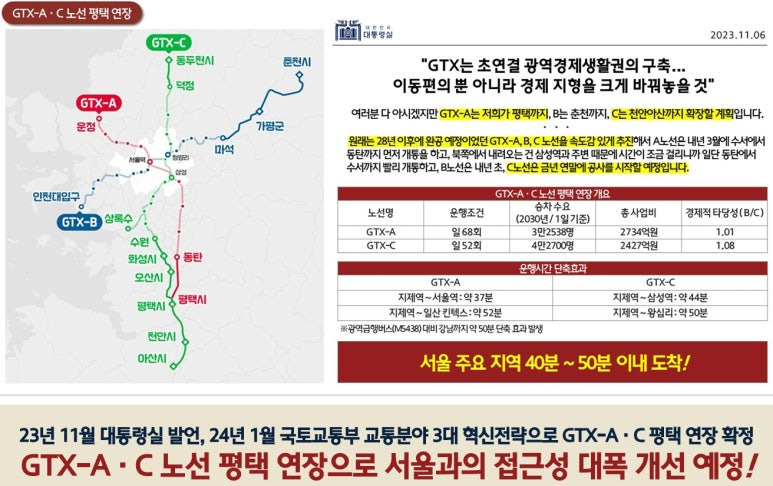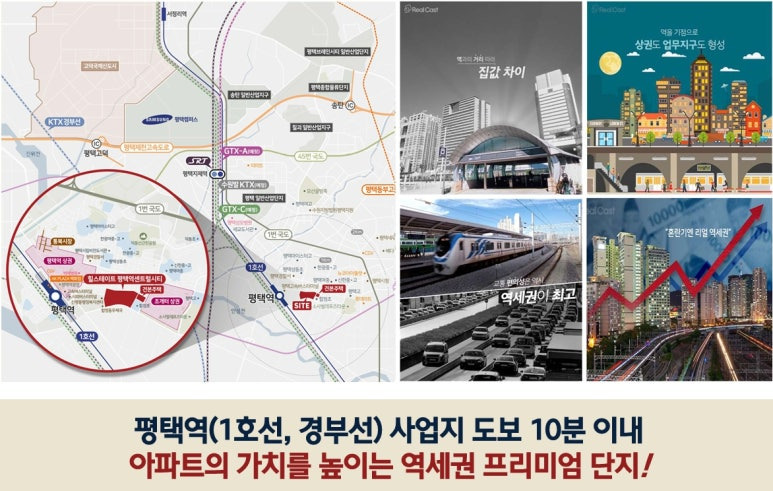 ▶ 당 사업지는 평택역 1호선, 경부선 및 지제역 SRT, GTX-A,C노선(예정), 수원발KTX(예정) 등 쾌속 교통망으로 대중교통을 이용한 광역도시 및 수도권 이동이 매우 편리한 위치