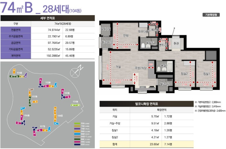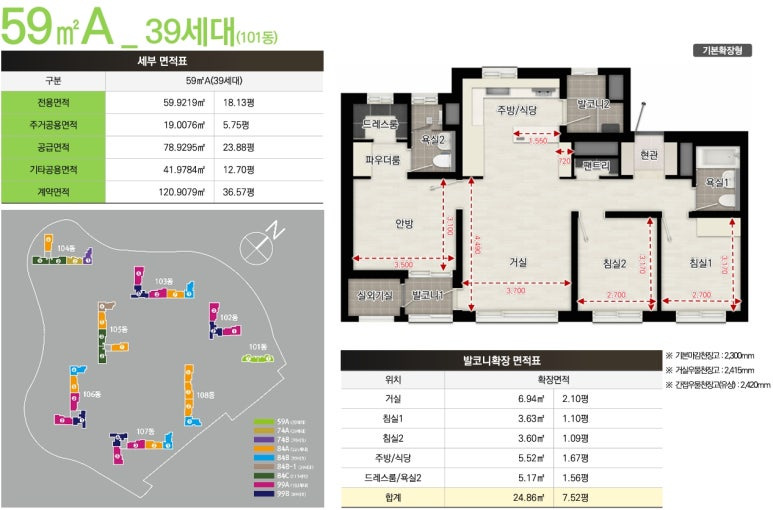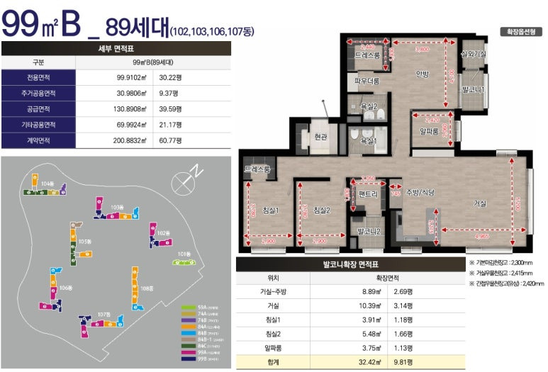 배치, 전세대 선호도 높은 남서향, 남동향 호실을 중심 배치하여 쾌적한 주거 환경 영위