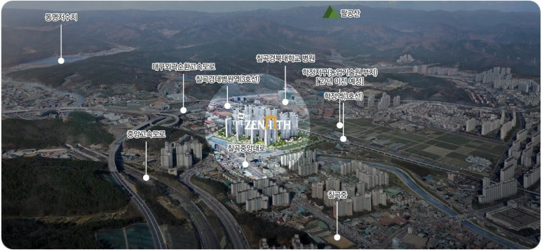 ▶ 당 사업지는 노후된 칠곡지구에 새로운 브랜드 대단지 두산위브더제니스 센트럴시티 공사중