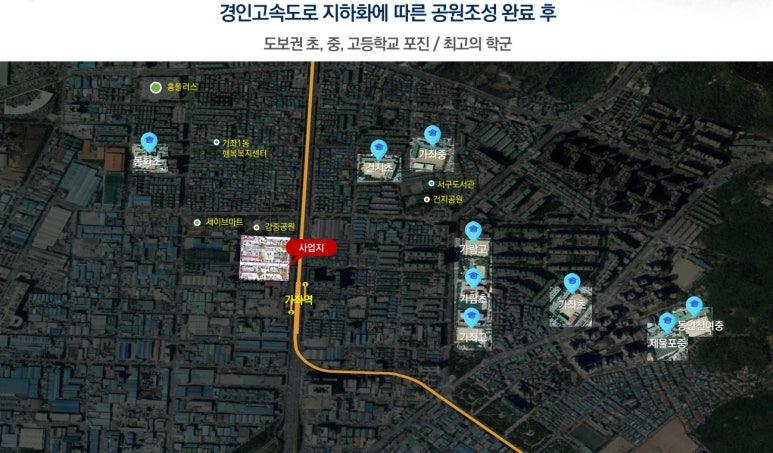 ▶ 당 사업지는 인천지하철2호선 인천 가좌역 도보3분 초역세권 위치로 지하철을 이용한 인천시내및 서울 이동이 편리하며, 경인고속도로, 제1외곽순환로,제2외곽순환로 등 광역도시 접근성이 매우 우수한 입지, 또한 홍대선 청라 연장, 청라 - 홍대입구, 급행 30분대 진입이 가능한 입지