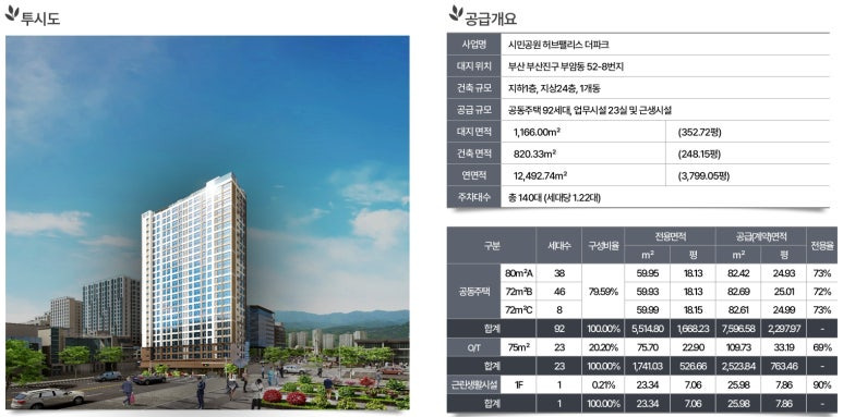 ▶ 부산진구 부암동 52-8번지 일원, 지하1층~지상24층, 공동주택 92세대, 업무시설 23호실 및 상업시설 공급 예정
