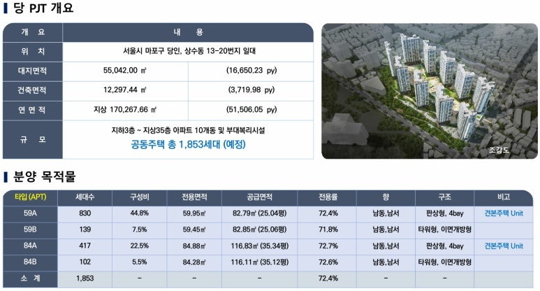 ▶ 서울시 마포구 상수동 13-20번지 일원, 지하3층 ~ 지상35층(최고층) 10개동, 아파트 1,853세대 및 상업시설, 부대 복리시설 공급 예정