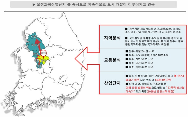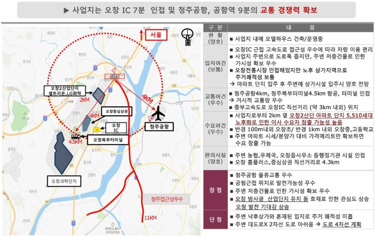 ▶ 당 사업지는 청주국제공항 차량5분 거리, 오창IC 진입 편리, 주변 광역도시 접근성이 편리