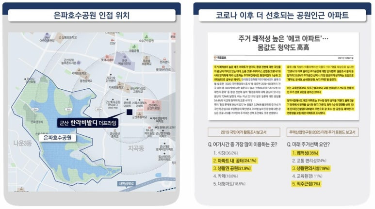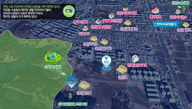 ▶ 당 사업지는 군산은파호수공원과 인접하여 주거 쾌적성이 우수하여 자연친화적 입지로 실수요 선호도 높은 입지