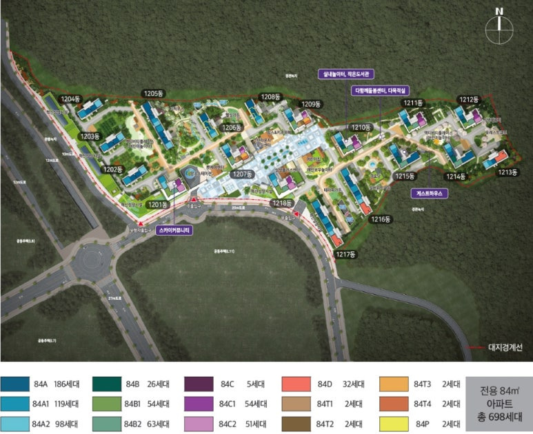 ▶ 사업지는 차별화된 미래 도시의 새로운 주거 기준이 될 스카트시티 대표 주거단지, 채광, 통풍 및 편리한 동선은 물론 선호도 높은 84㎡ 단일 평형 구성으로 더 쾌적한 주거 공간