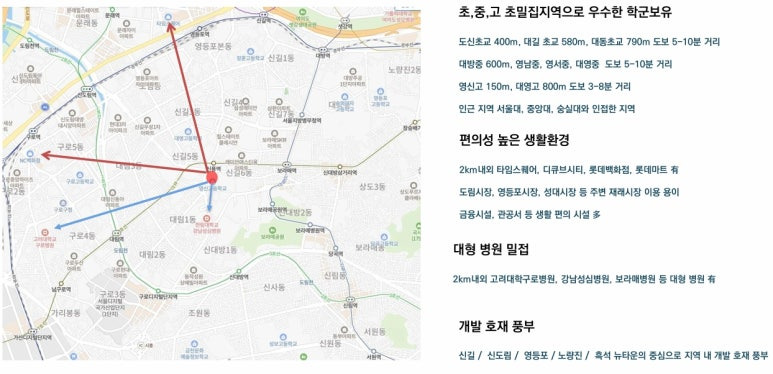 ▶ 신도림역, 영등포역을 통한 광역도시로 편리한 이동이 가능하며, 2km이내에 대규모 쇼핑센터인 타임스퀘이, 디큐브시티, 롯데백화점등이 위치해 편리한 생활인프라 구축