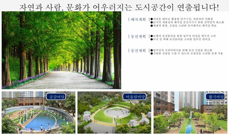 다양한 테마정원과 친환경 단지 배치가 자연스레 어우러지다.