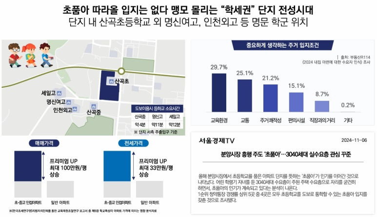 ▶ 사업지는 산곡초를 품고 있는 초품아 대단지로 안신 안전한 도보 통학 교육환경 우수한 입지, 산곡중, 청천중, 세일고, 인천외고, 명신여고 등 명문 학군 다수 인접한 입지