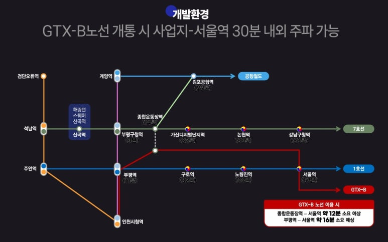 ▶ 당 사업지는 부평구 7호선 산곡역 역세권 입지로 대중교통을 통한 서울 인천 이동이 빠르고 편리, 또한 경인고속로, 제1순환고속도로 자동차 진입이 편리하여 주변 광역도시, 서울 이동이 편리한 입지, 사통팔달 교통망과 더불어 7호선 연장, GTX-B노선 개발 수혜로 향후 프리미엄 기대