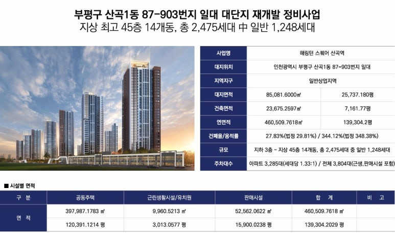▶ 인천광역시 부평구 산곡1동 87-903번지 외 일원 / 지하3층 ~ 지상45층(최고층) 총14개동 / 공동주택(아파트) 총2,475세대, 복리부대시설, 근린생활시설 등 공급예정