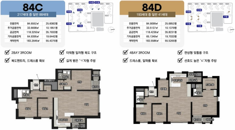 배치, 전세대 선호도 높은 남서향, 남동향 호실을 중심 배치하여 쾌적한 주거 환경 영위