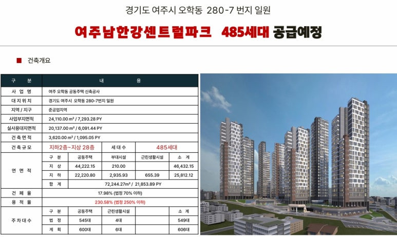 ▶ 경기도 여주시 오학동280-7번지 외 일원 / 지하2층 ~ 지상28층(최고층) 총7개동 / 공동주택(아파트) 총485세대, 복리부대시설, 근린생활시설 등 공급예정