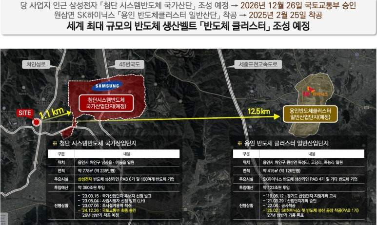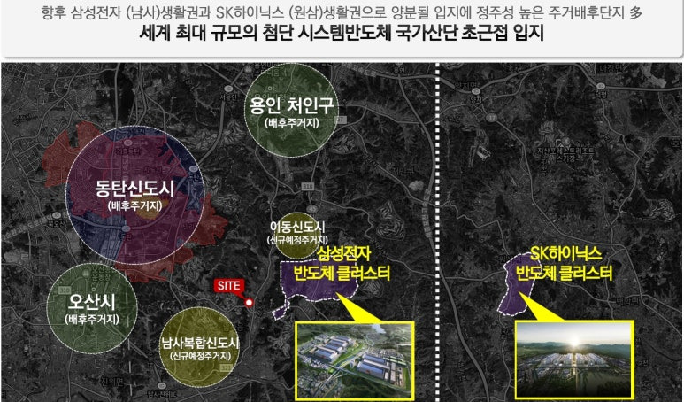 ▶ 사업지 동측 첨단시스템반도체 국가산단(2km내외)차량 5분 진입, 사업지 서측 동탄2신도시(5km) 차량 15분거리, 첨단시스템반도체 국가산단(삼성전자), 용인테크노밸리 등 인근 산업단지 풍부한 직주근접성이 우수한 입지로 향후 프리미엄 기대입지