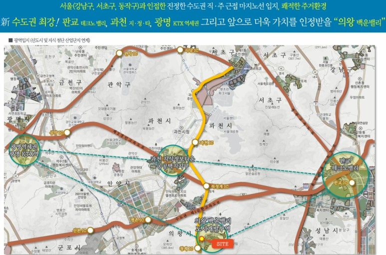 ▶ 당 사업지는 수도권 최고의 명품 주거단지를 꿈꾸는 의왕시의 야심작 약29만평, 1조6천억원규모, 서울인접 수도권 핵심거점지역, 친환경 명품 주거단지에 핵심 위치