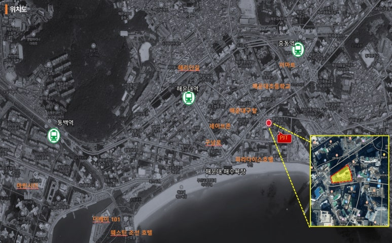 ▶ 사업지는 해운대 우수한 바다뷰 조망과 해운대 해수욕장 인접으로 관광, 교통, 생활편의, 주거인프라까지 모두 갖춰진 입지, 전통시장, 로데오 아울렛, 이마트, 세이브존 등