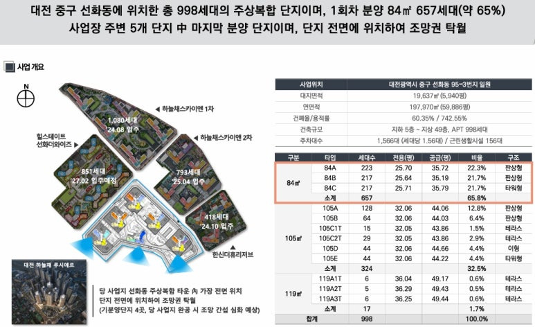▶ 대전광역시 중구 선화동 95-3번지 외 일원 / 지하5층 ~ 지상49층(최고층) 총6개동 / 공동주택(아파트) 총998세대, 복리부대시설, 근린생활시설 등 공급예정