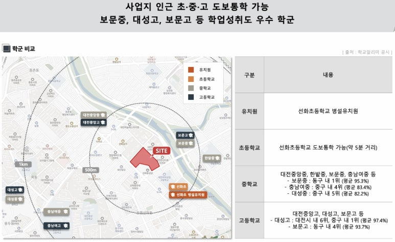 ▶ 사업지는 선화초, 한밭중, 충남여중, 충남여고, 대성중, 대성고 등 초, 중, 고가 인접한 남다른 교육환경이 든든한 명문학군 우수한 입지