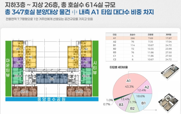 ▶ 충청남도 서산시 읍내동 102-125번지 외 일원 / 지하3층 ~ 지상26층 총1개동 / 주거용 오피스텔 총614실, 복리부대시설, 근린생활시설 등 공급