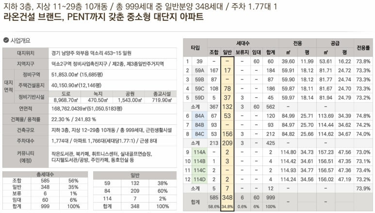 ▶ 경기도 남양주 와부읍 덕소리 453-15 외 일원 / 지하3층 ~ 지상29층(최고층) 총10개동 / 공동주택(아파트) 총999세대, 복리부대시설, 근린생활시설 등 공급예정