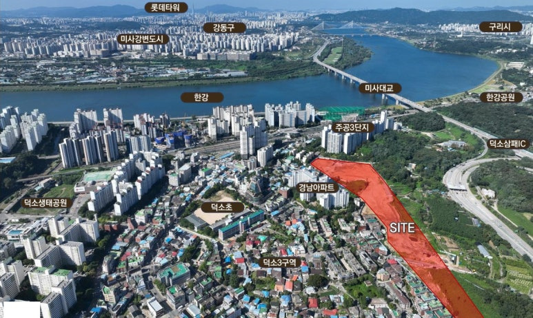 ▶ 당 사업지는 덕소역 GTX-E, F(계획)노선, 구리역 8호선, 9호선 왕숙역(예정)으로 환승 용이해 도시 접근성 우수, 잠실역 30분대. 강남구청역 40분대 대중교통을 이용 편리하고 빠른 접근성 입지, 덕소 삼패IC, 서울-양양고속도로, 서울외곽순환고속도로, 수석-호평도시고속도로, 올림픽대로, 강변북로 등 접근용이 사통팔달 광역 교통 입지